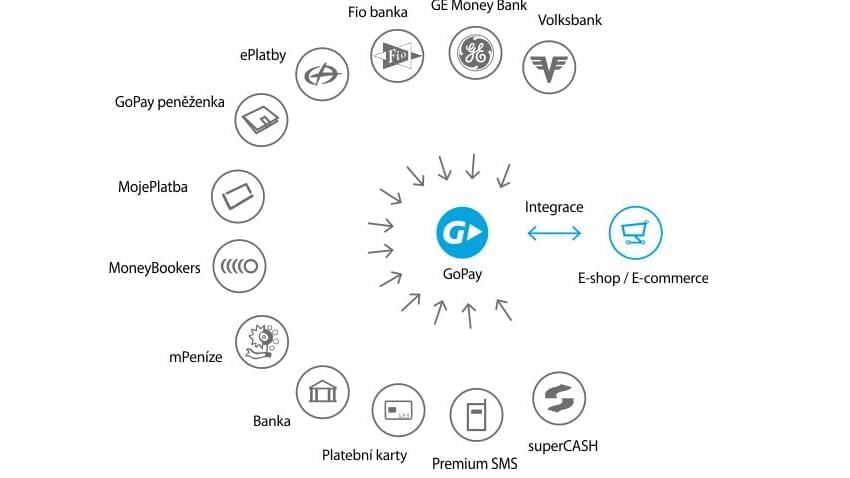 Platební brána GoPay disponuje integrovaným systémem až 12 platebních metod. Lze tak nabízet veškeré platby prostřednictvím jediného provozovatele platební brány. Ve výsledku to tedy znamená: jedna integrace = 12 platebních metod.